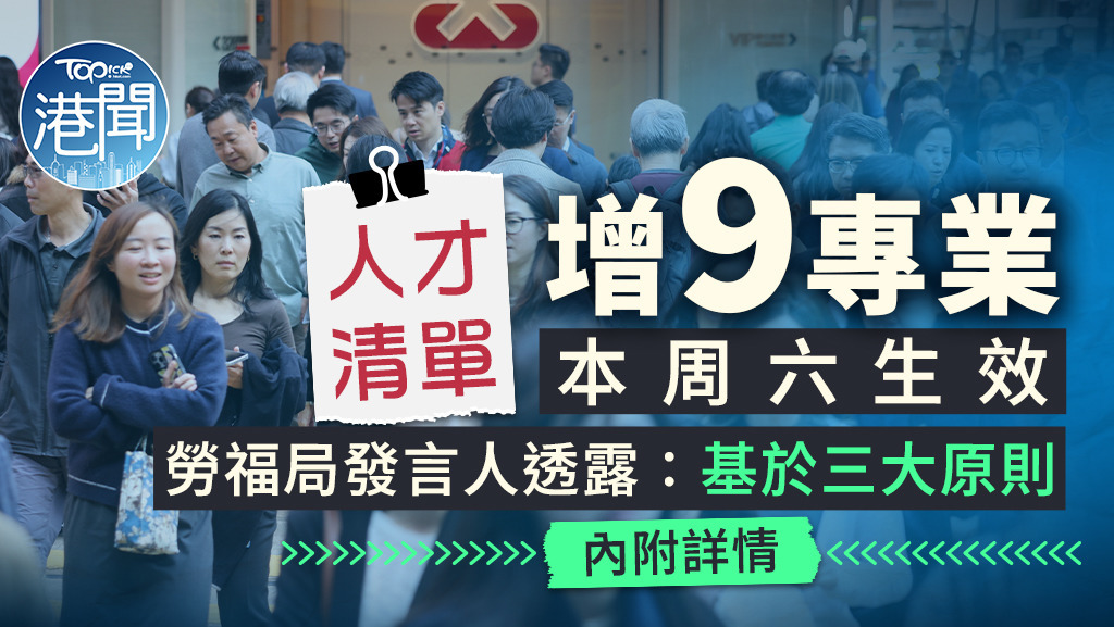 香港政府昨天宣布新一轮的人才清单完成更新。新清单扩展至60项专业,会在3月1日起生效。新增的专业来自四个行业领域,共9项。
